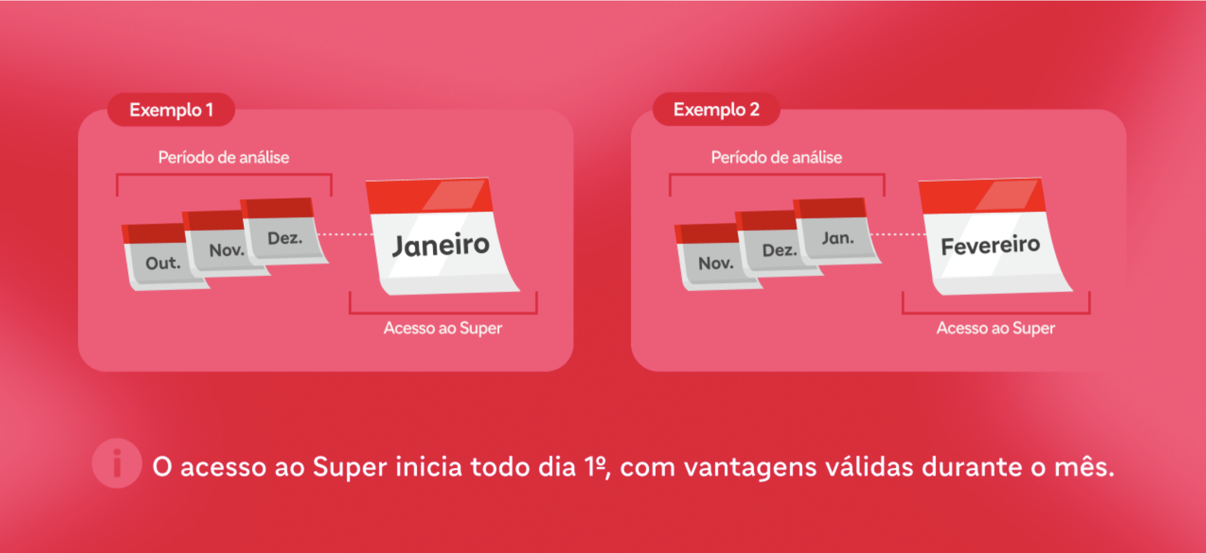 Todos os meses, no início do mês, o nível é atualizado e você consegue conferir se continua sendo Super, qual seu nível ou se não é mais elegível. Lembrando que o programa olha para os últimos 3 (três) meses e leva em consideração os critérios citados na pergunta anterior.
